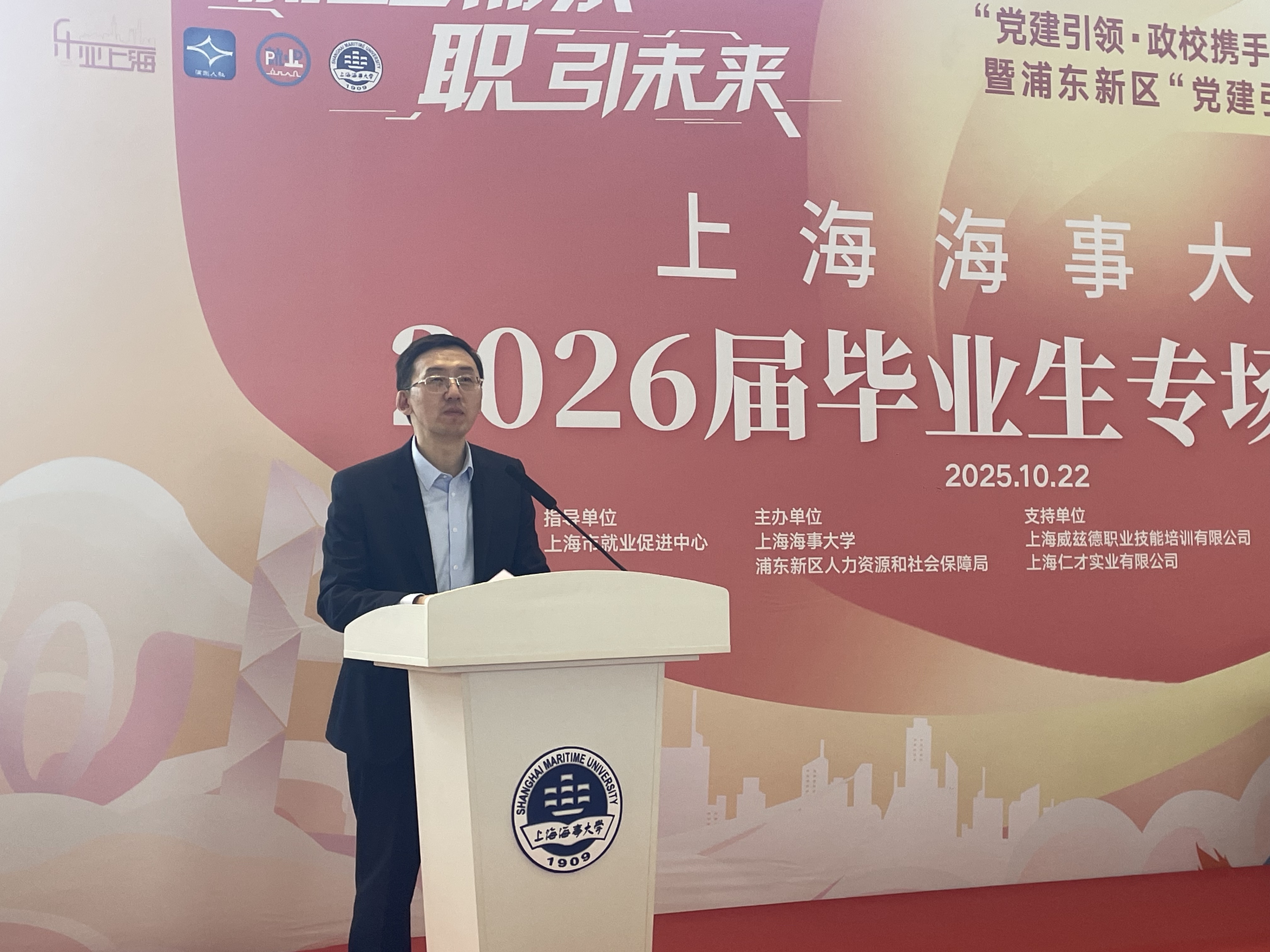 本次活动由上海市就业促进中心指导,上海海事大学与浦东新区人力资源和社会保障局联合主办。本次活动的举办标志着政校双方以党建为纽带,为2026届毕业生就业工作按下“加速键”。