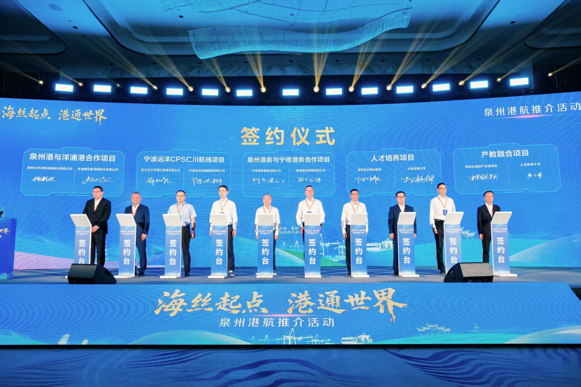 上海海事大学副校长严伟应邀参加并代表学校与泉州市港航产业促进会签订战略合作协议。根据协议,双方将聚焦产教融合人才培养,为泉州港航业提供高质量、创新型人才资源。围绕智慧、绿色港口发展和港航供应链优化等领域联合开展科研创新。发挥学校学科特色优势,为泉州港航产业发展规划等提供战略咨询和服务。双方还将在港航历史文化研究传播、“大思政”课建设等方面加强协同合作,共同推动港航文化的传承创新。
