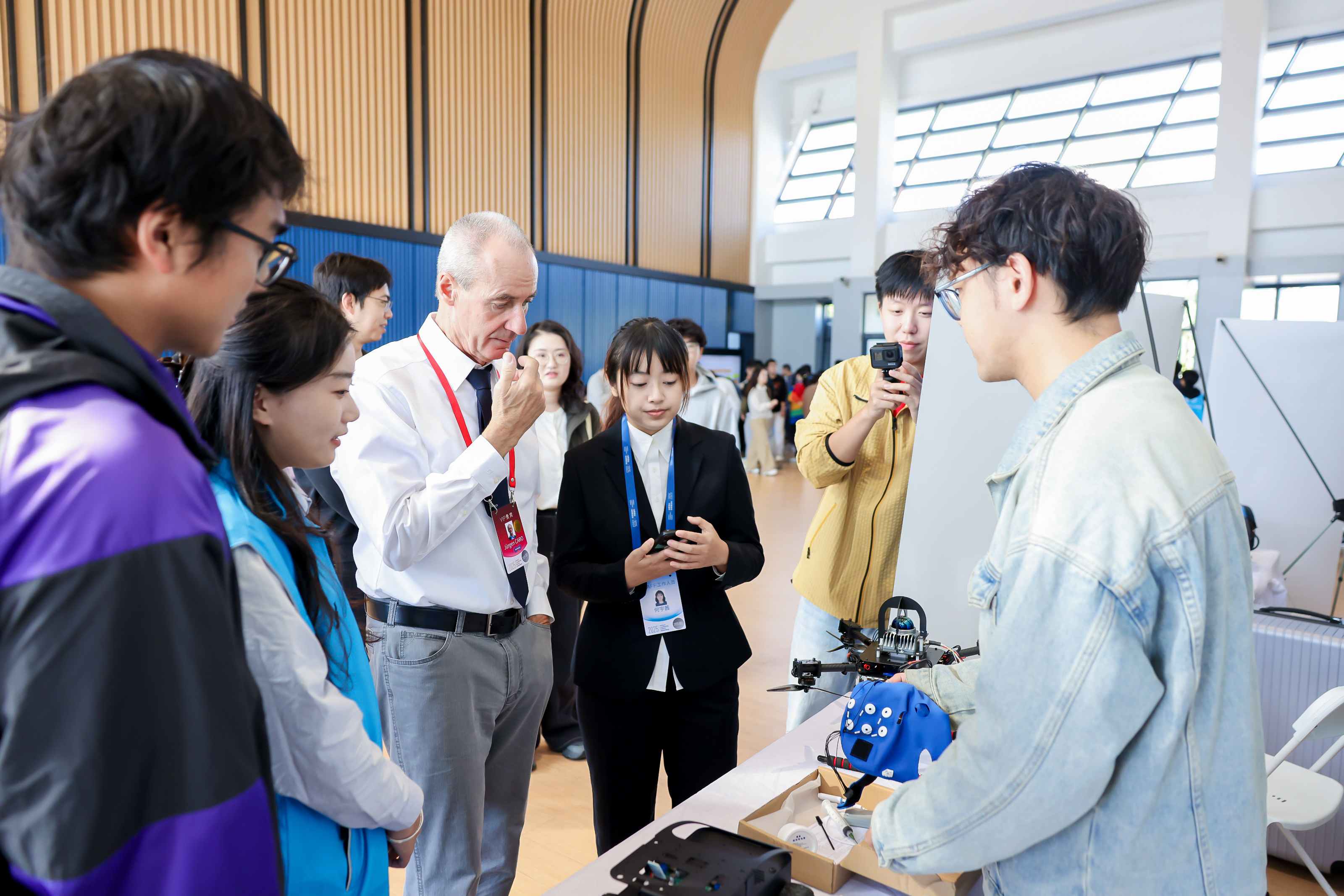 活动现场还设置科创成果展示区和龙舟体验活动。来自上海海事大学、上海海洋大学、上海电力大学、上海电机学院、上海建桥学院五所高校的17支大学生科创团队,集中展示了高精度水下智能巡检机器人、自适应机械臂、智能无人机系统、种植管理一体化装备等代表性成果,集中呈现“问题导向、技术扎实、落地可行”的大学生科创实践成效。