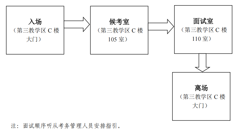 五、考生应自觉服从考务工作人员管理,依据面试序号依次参加面试,面试时考生不得透露本人姓名及其他个人信息(包括但不限于穿着校服或带有校徽、校名等标志的服装参加面试);面试结束后不得返回候考室,应直接离开考场区域。