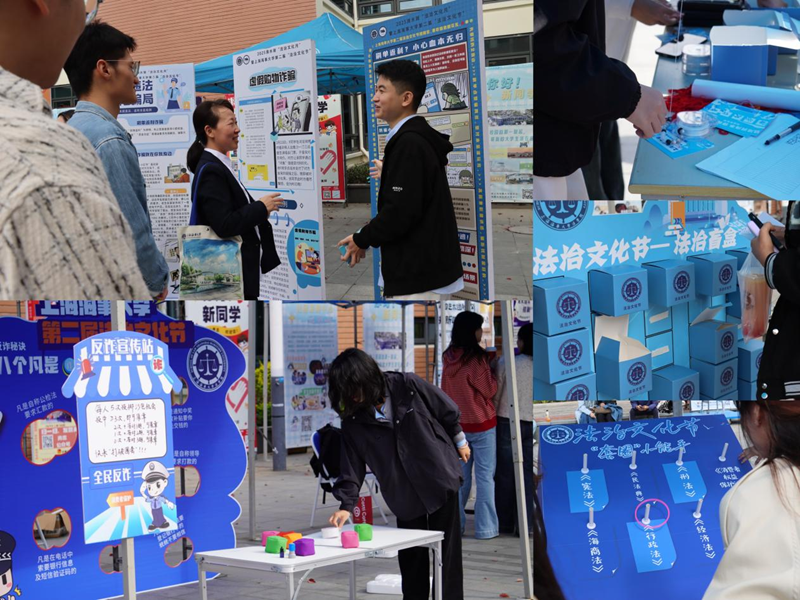 与此同时,“法润海事・律伴研途”外场活动在北广场同步开展。三大主题板块各具特色:“防诈骗宣传展览”通过图文展板与真实案例,系统拆解电信网络诈骗套路;“普法游园会”设置法律词语拼图、法治盲盒、法条套圈等互动游戏,让学生在趣味挑战中沉浸式学习法律知识;“单词珠链——法治词汇串珠DIY”活动则将法治元素融入手工创作,让法治理念走进日常生活。丰富多样的活动形式点燃了师生参与热情,校园内弥漫着浓厚的法治文化氛围。