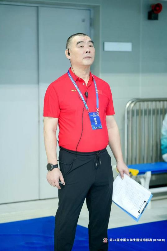 赵伟民老师受中国学生体育联合会大学游泳分会选派,执裁第24届中国大学生游泳锦标赛(南方赛区),并担任赛事检录长。他凭借丰富的执裁经验和对竞赛规则的精准把握,统筹全场参赛选手的检录工作,确保了赛事各环节的有序推进,展现出扎实过硬的专业能力和责任担当。