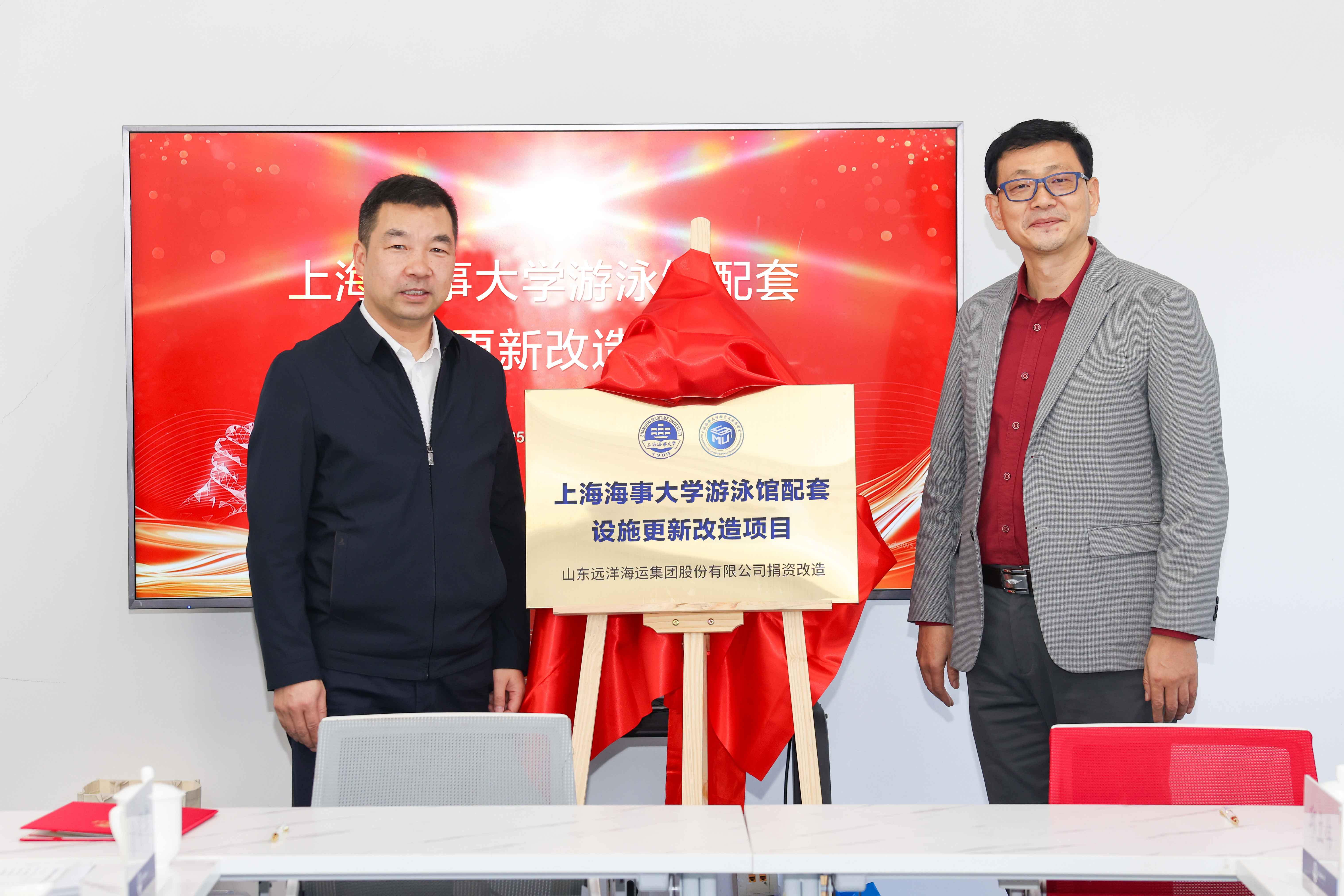 12月2日,山东远洋海运集团(以下简称“集团”)捐赠签约仪式暨学校游泳馆配套设施更新改造项目启用仪式在校举行。集团党委书记、董事长赵博,学校党委副书记、副校长李志鹏,以及双方相关职能部门负责人出席活动。