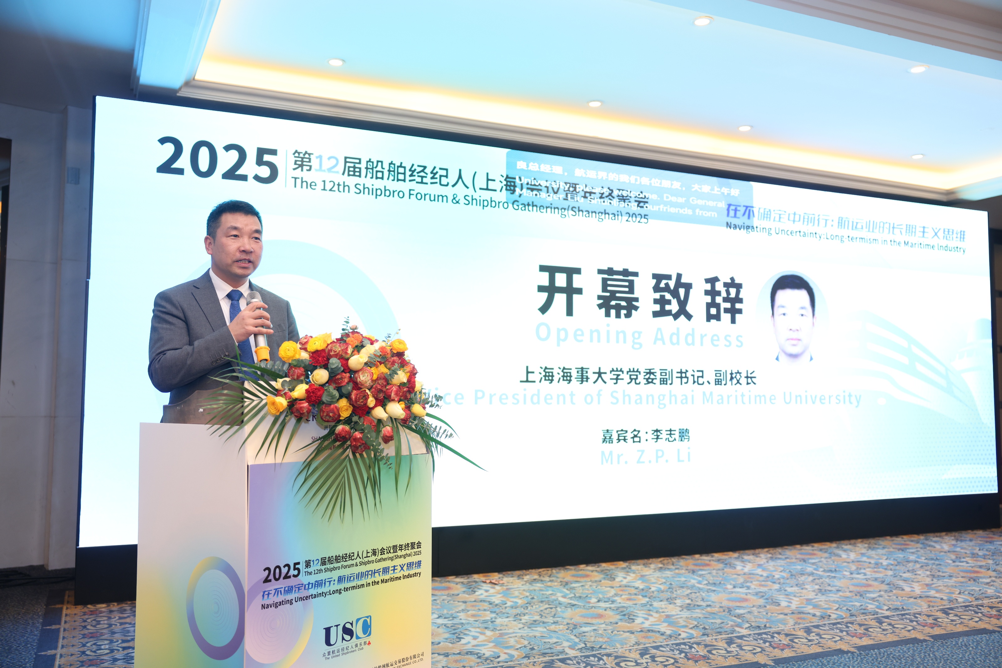 12月4日,由众盟航运经纪人俱乐部主办的第十二届船舶经纪人(上海)会议在沪举行,会议以“在不确定中前行:航运业的长期主义思维”为主题,汇聚船东、船厂、船舶经纪机构、金融保险及法律服务机构等130余名业内代表共话行业发展。上海海事大学党委副书记、副校长李志鹏应邀出席会议并致辞。
