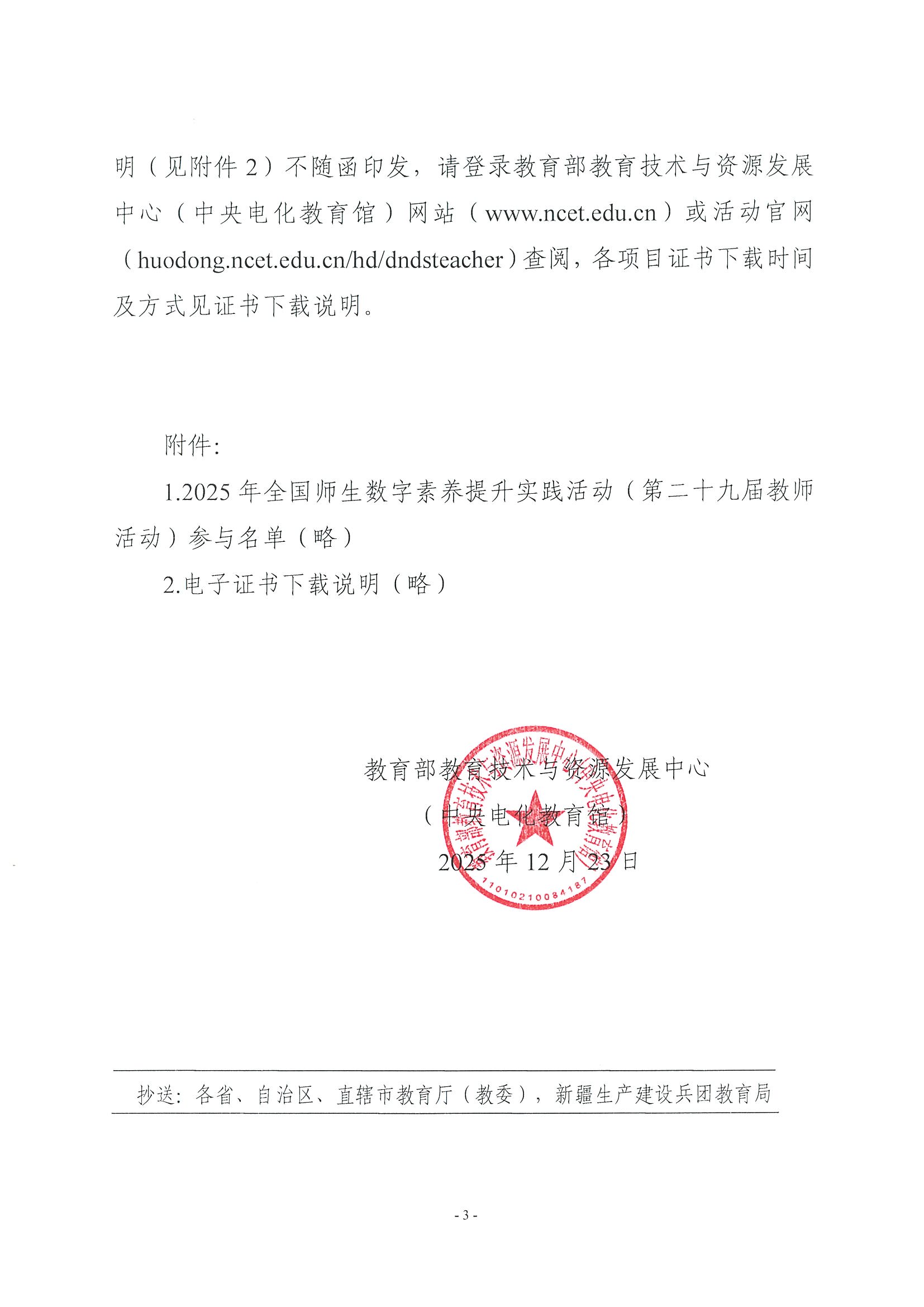 图2 关于总结2025年全国师生数字素养提升实践活动(第二十九届教师活动)参与情况的通知2
