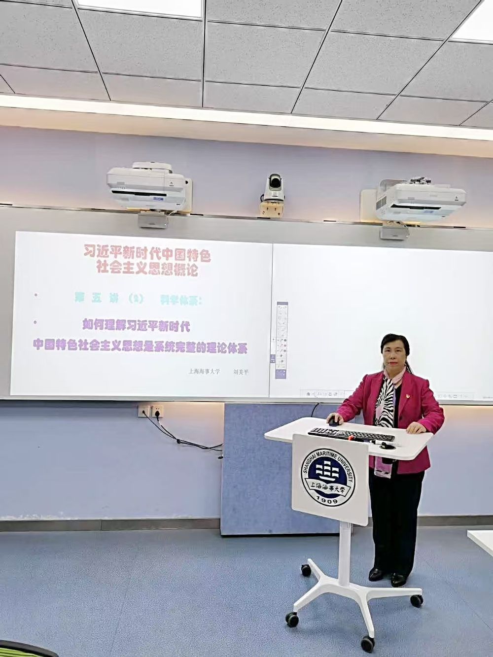 刘美平在智慧教室给本科生讲《习近平新时代中国特色社会主义思想概论》课