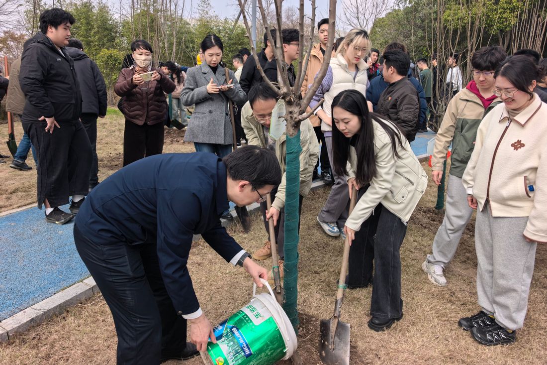 学校党委书记宋宝儒,党委副书记曹荣瑞,党委副书记、副校长李志鹏,副校长殷明来到现场,与校内各部门党团支部近300名师生代表并肩植绿,用协作与汗水勾勒校园绿色发展的鲜活图景。