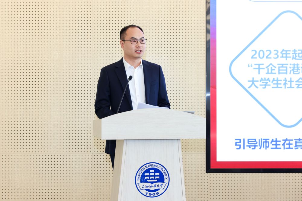图6 校团委书记赵大以“深化‘千企百港调查’2.0 建设,构建航运特色实践育人新体系”为题为作交流发言