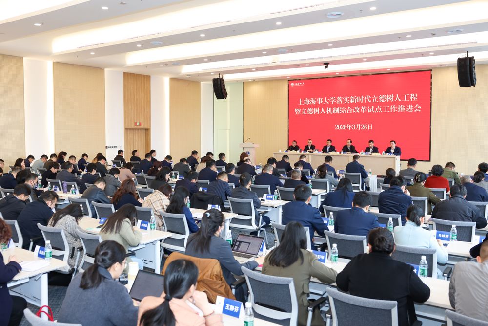 为深入贯彻落实教育部2026年度高校思想政治工作研讨会暨立德树人机制综合改革试点推进会精神,扎实推动学校立德树人工作走深走实,3月26日上午,上海海事大学召开落实新时代立德树人工程暨立德树人机制综合改革试点工作推进会。校领导宋宝儒、曹荣瑞、严大龙、李志鹏、施欣、殷明等出席,各二级党组织党政负责人,各职能部门主要负责人,思政课教师代表、辅导员代表,试点院系、“一站式”学生社区、科研团队、试点班级教师代表参会。会议由校党委副书记、副校长李志鹏主持。