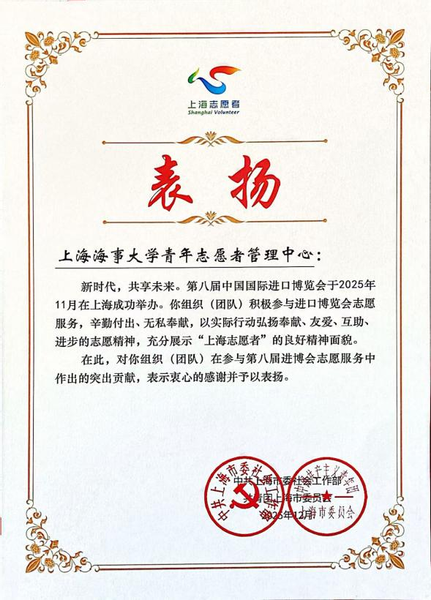 学校组织志愿者参与第八届进博会志愿服务工作受表扬